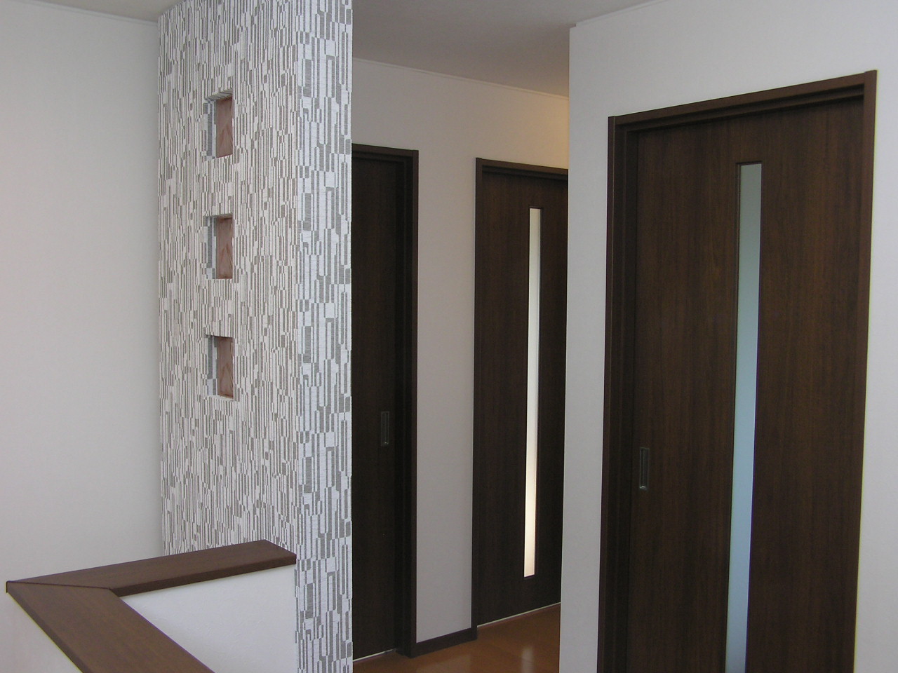 玄関から客間への入口 明かり部に和紙材を取り入れてます