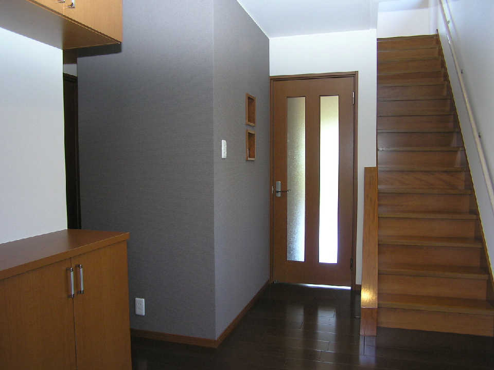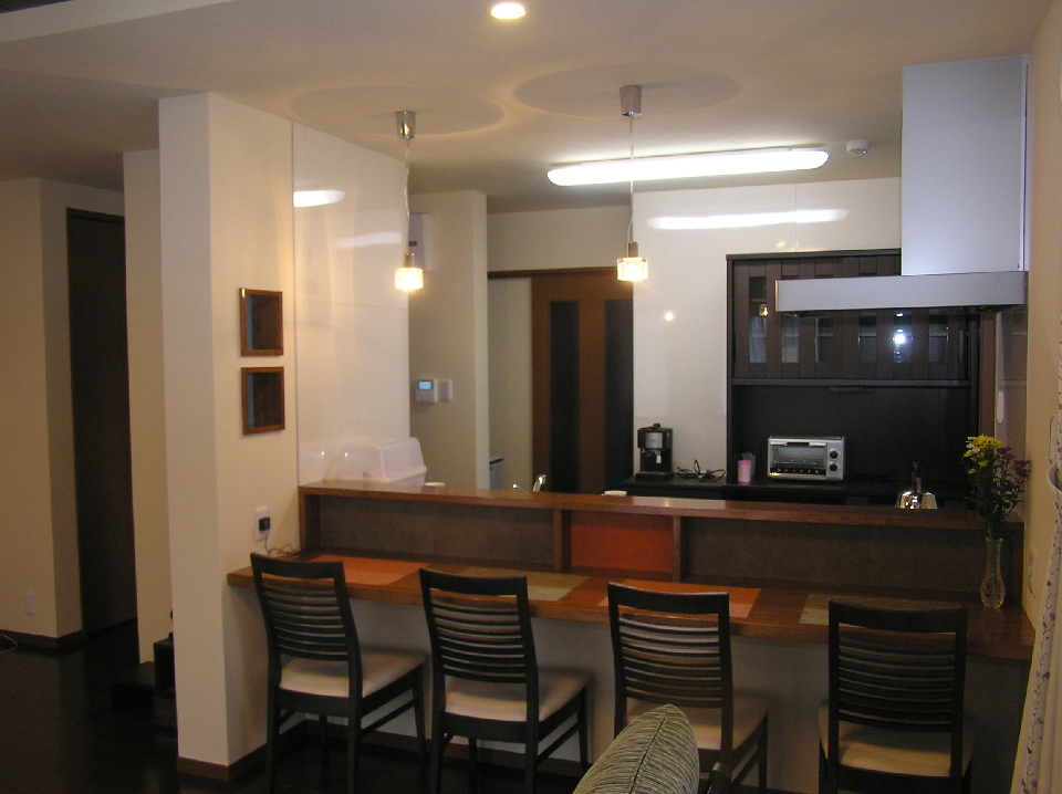ダーク色を貴重とした快適LDK そして、廻りを和らげたるためにベージュ色の珪藻土を塗りました。