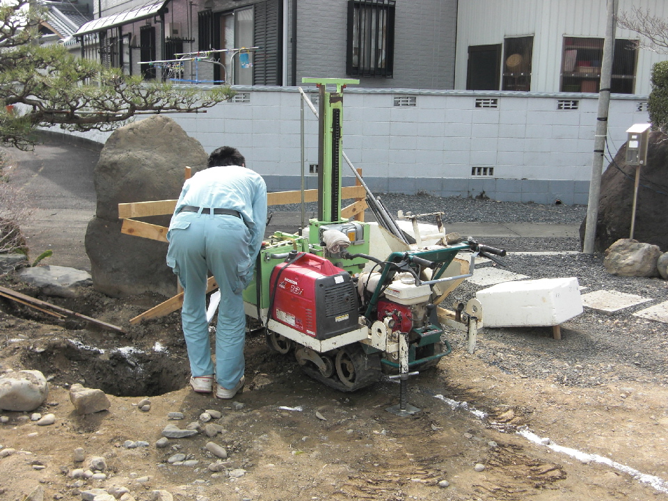 地盤調査に応じて表層改良(軟弱な場合は、柱状改良も行います。)
