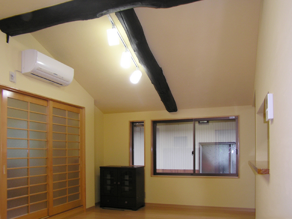 天井を高くしたことで梁が浮き出てき快適なリビング