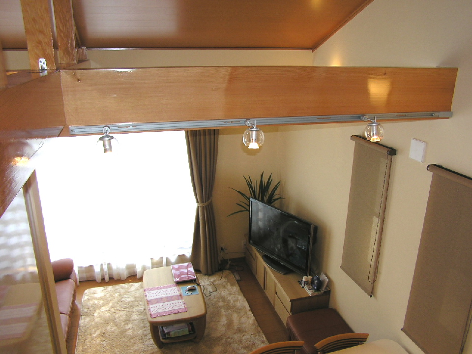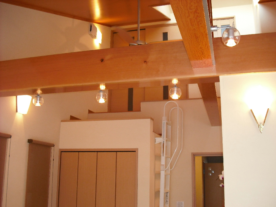 壁には珪藻土塗り壁、また天井を斜め天井とし、材木屋の利点を生かした無垢梁、板をふんだんに使用しました。帰宅した際には、仕事の疲れがいつも癒されるような空間に仕上がったと思います(^o^)