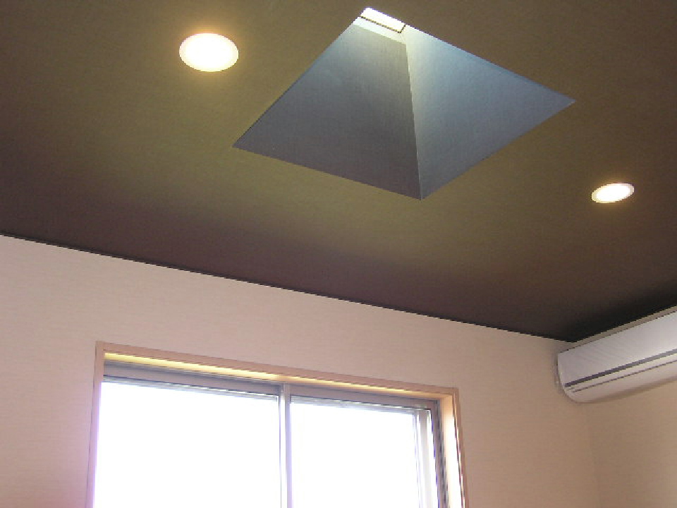 敷地の関係上限られた間口のため、この南面間口いっぱいに太陽の光を取り入れたく、2階へLDKを配置しました。また、浴室、トイレ、寝室等の居住空間もすべて2階に配置しました。住宅の各部屋の中でも、一番長くいるLDKには、いつも陽が差していたいものですよね。