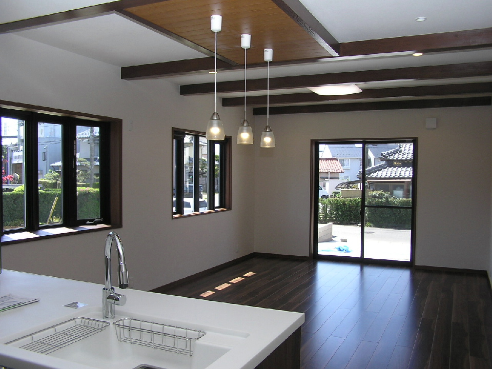 天井には梁材を とても良い色に仕上がりました
