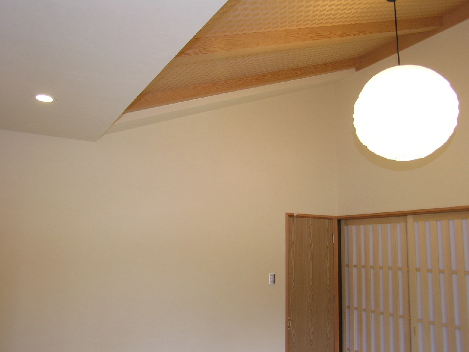 リビング 和をイメージした勾配天井