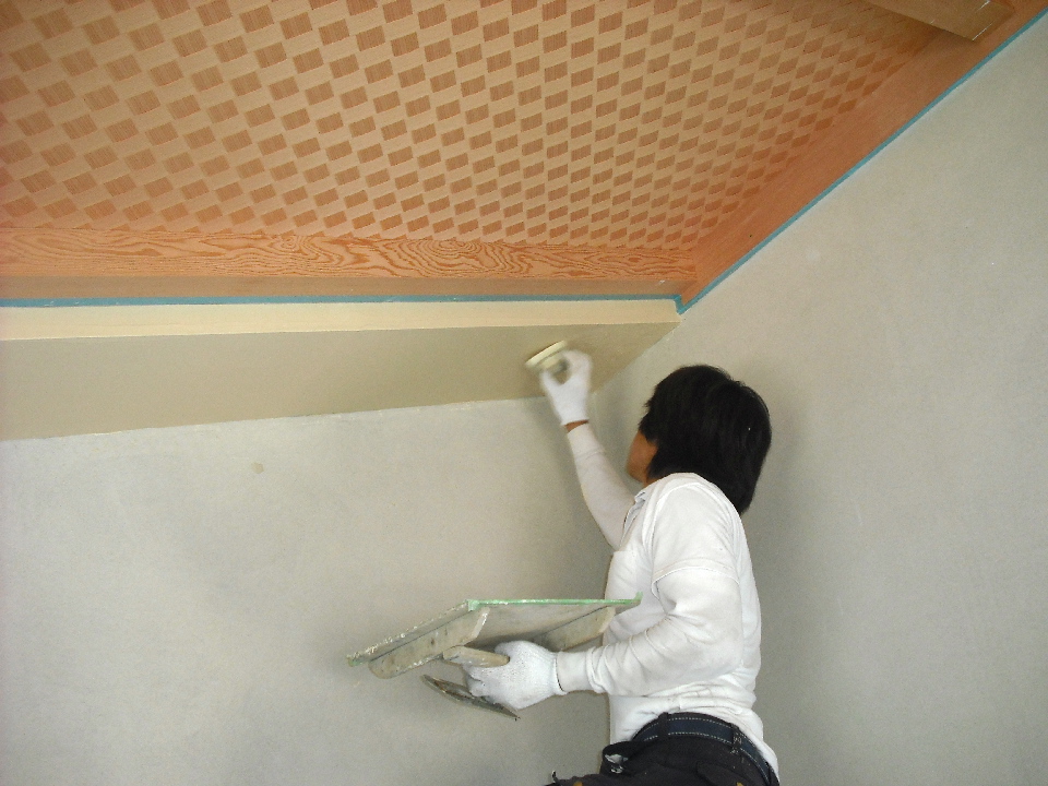 DK 天井には無垢梁、それを包み込む珪藻土