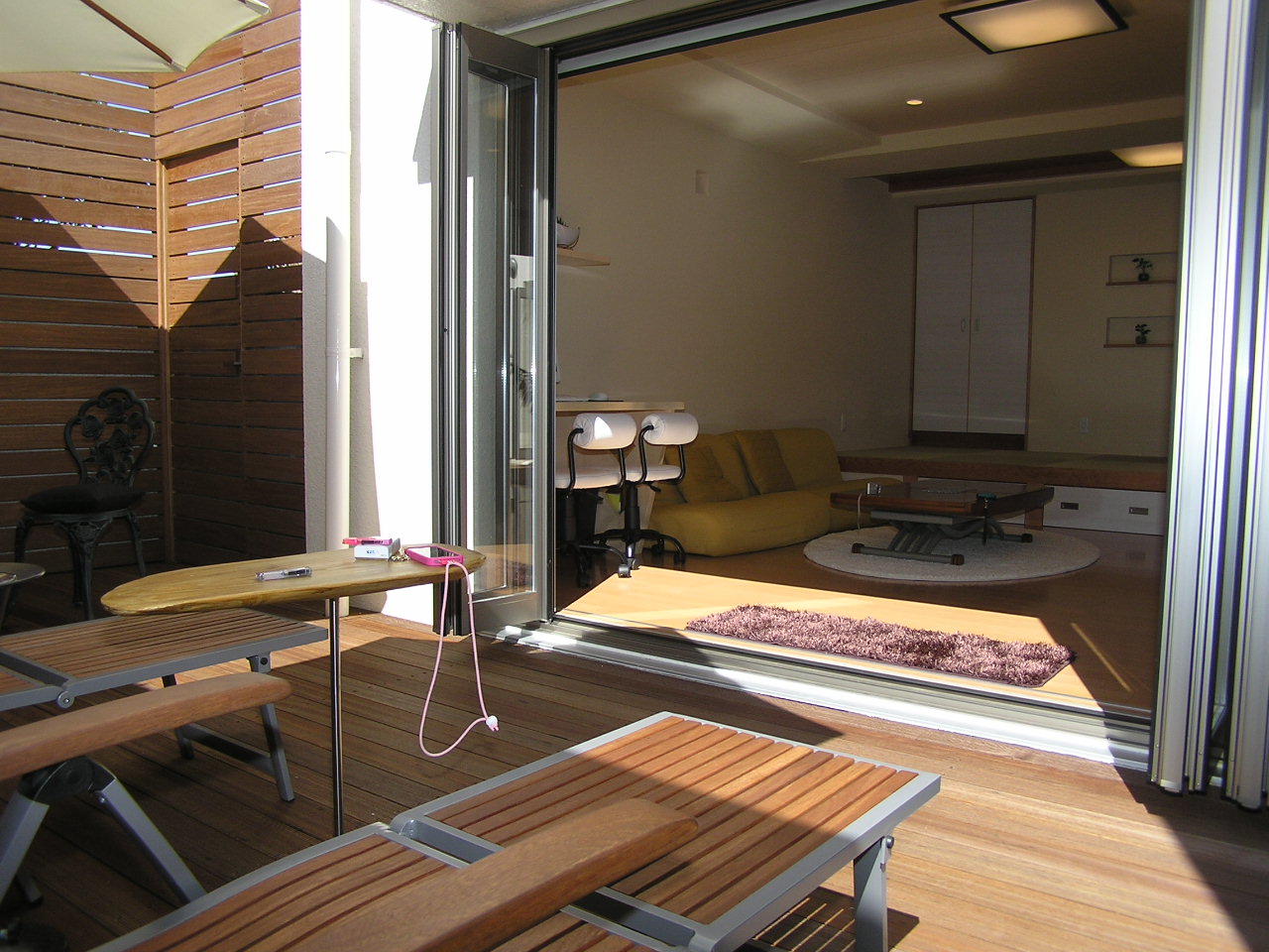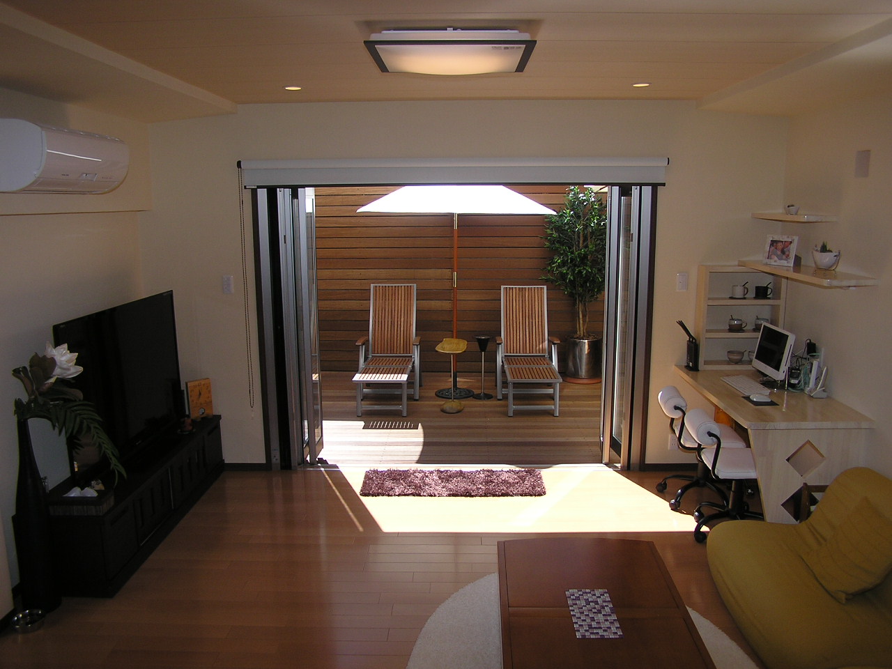 • リビングから見えるウッドデッキ