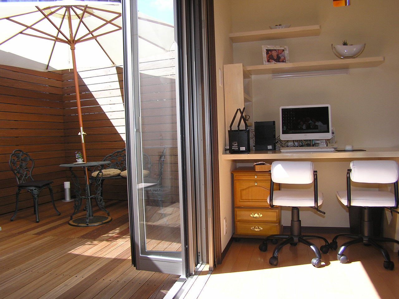 • 大工さんの手作りの机・棚、素敵ですね