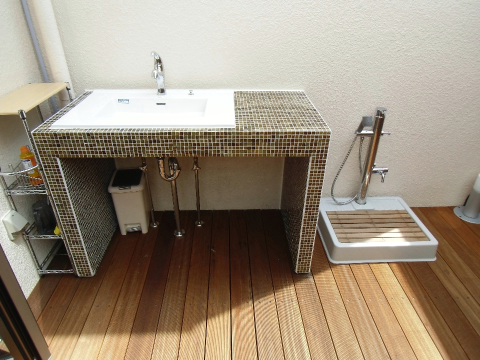 手造りの手洗い 表面はガラスタイル