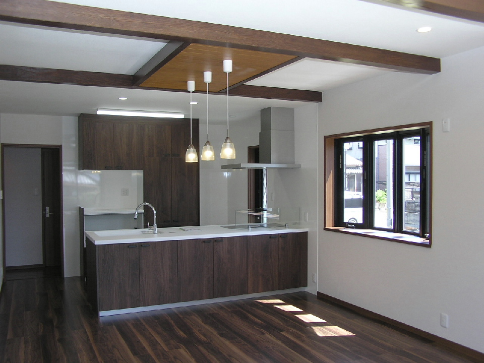 • 天井には梁材を とても良い色に仕上がりました