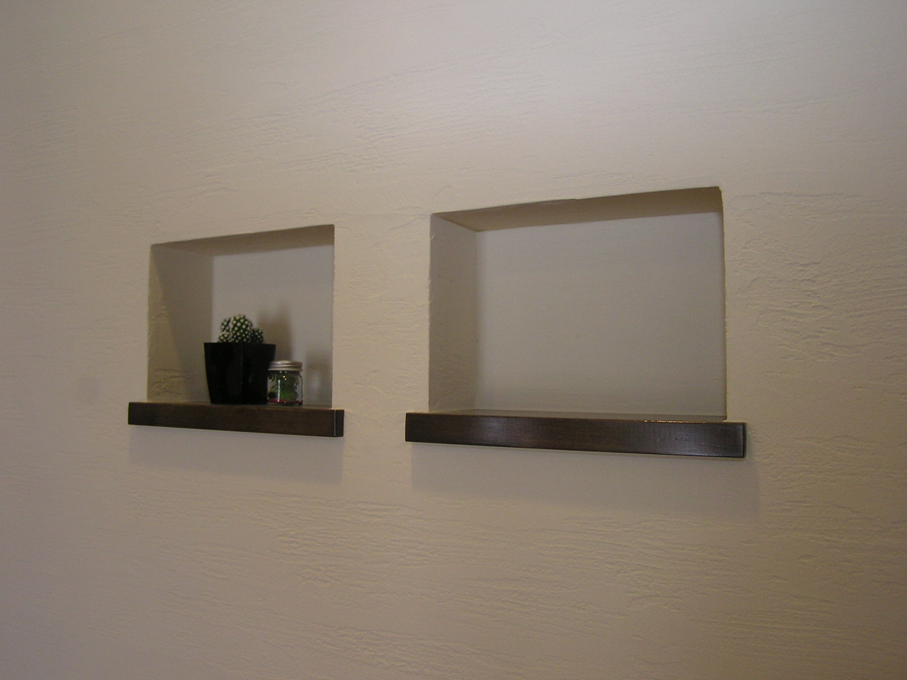 玄関奥には奥様の提案した飾り棚(珪藻土で巻き込みました)