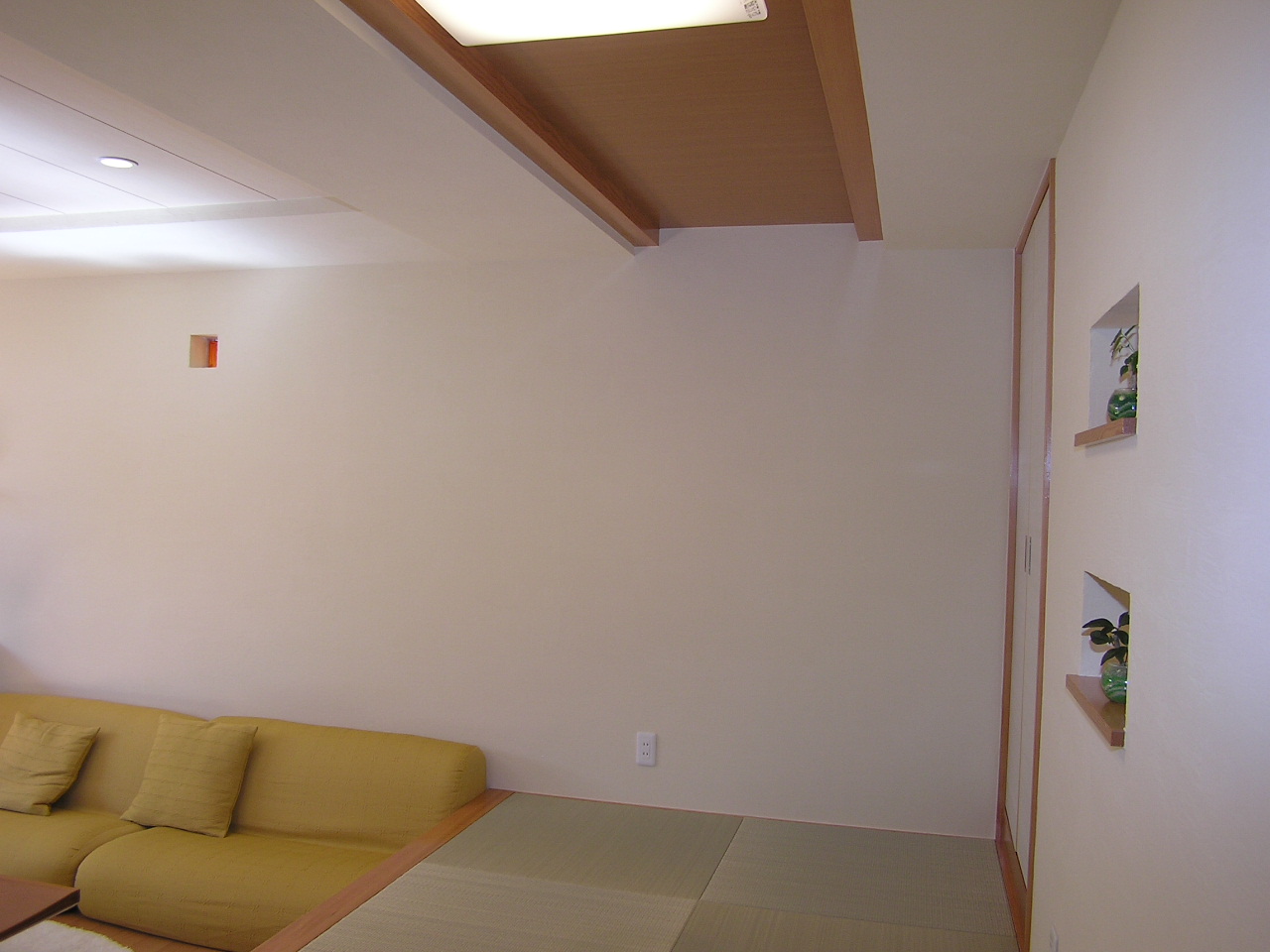• 天井を一部和に。ここに座ると和の空間が漂います
