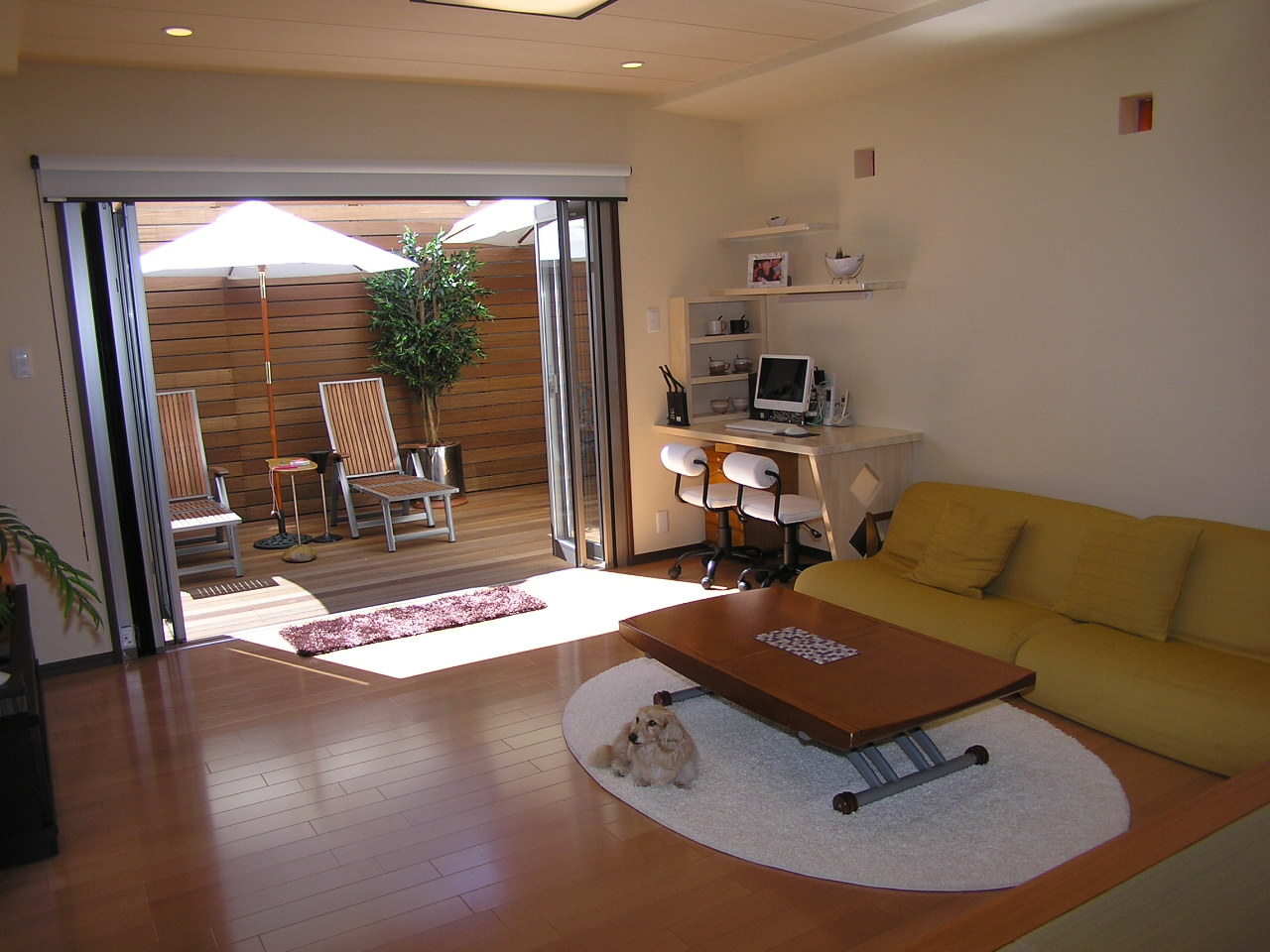 • リビングから見えるウッドデッキ