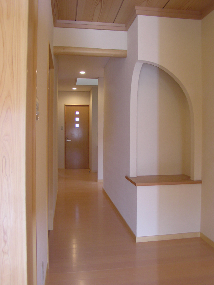 • 玄関ホールごしに 丸窓・千本格子の建具を