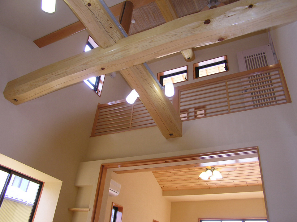 京都では一般的に見られる数奇屋の住宅。あちらに行くとなぜか心が和みますよね。そんな住宅をお客様にも‥外観はさっぱりとした数奇屋造り。でも中身は標準仕様四寸角、通し柱は五寸、六寸角で建てる骨太構造。太い骨組みってやっぱり丈夫で長持ち。また、木の香りが心地良いです。
