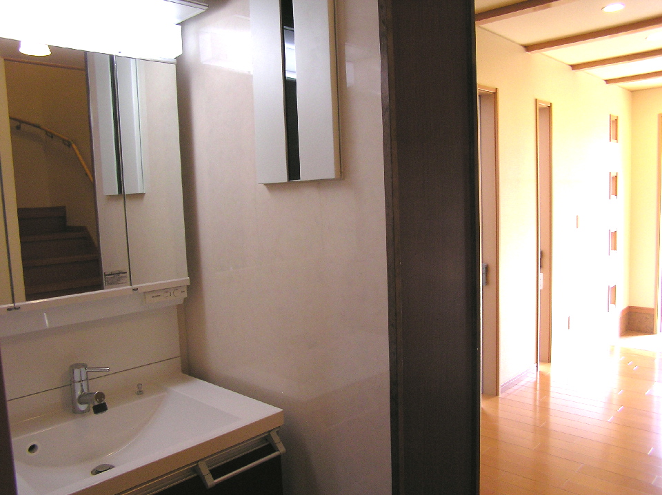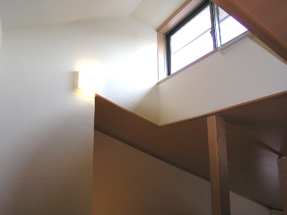 敷地の関係上限られた間口のため、この南面間口いっぱいに太陽の光を取り入れたく、2階へLDKを配置しました。また、浴室、トイレ、寝室等の居住空間もすべて2階に配置しました。住宅の各部屋の中でも、一番長くいるLDKには、いつも陽が差していたいものですよね。