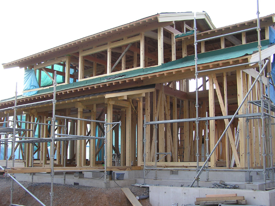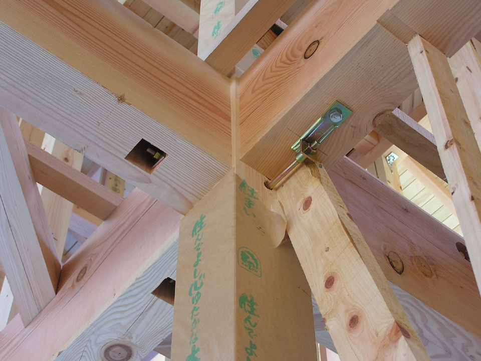 京都では一般的に見られる数奇屋の住宅。あちらに行くとなぜか心が和みますよね。そんな住宅をお客様にも‥外観はさっぱりとした数奇屋造り。でも中身は標準仕様四寸角、通し柱は五寸、六寸角で建てる骨太構造。太い骨組みってやっぱり丈夫で長持ち。また、木の香りが心地良いです。