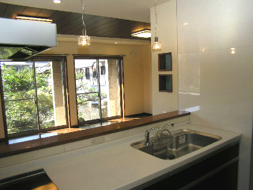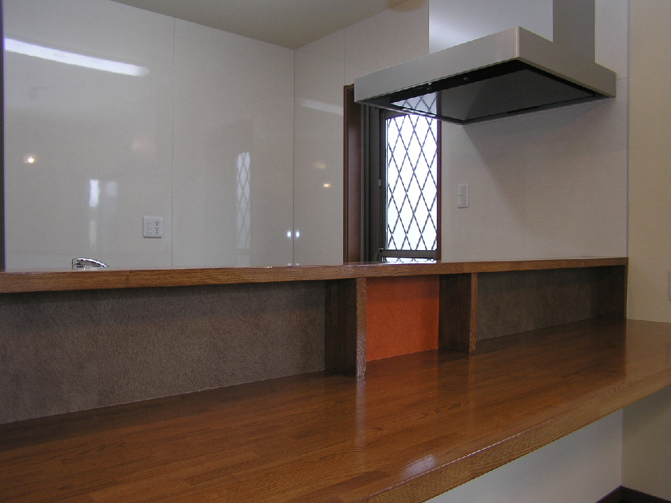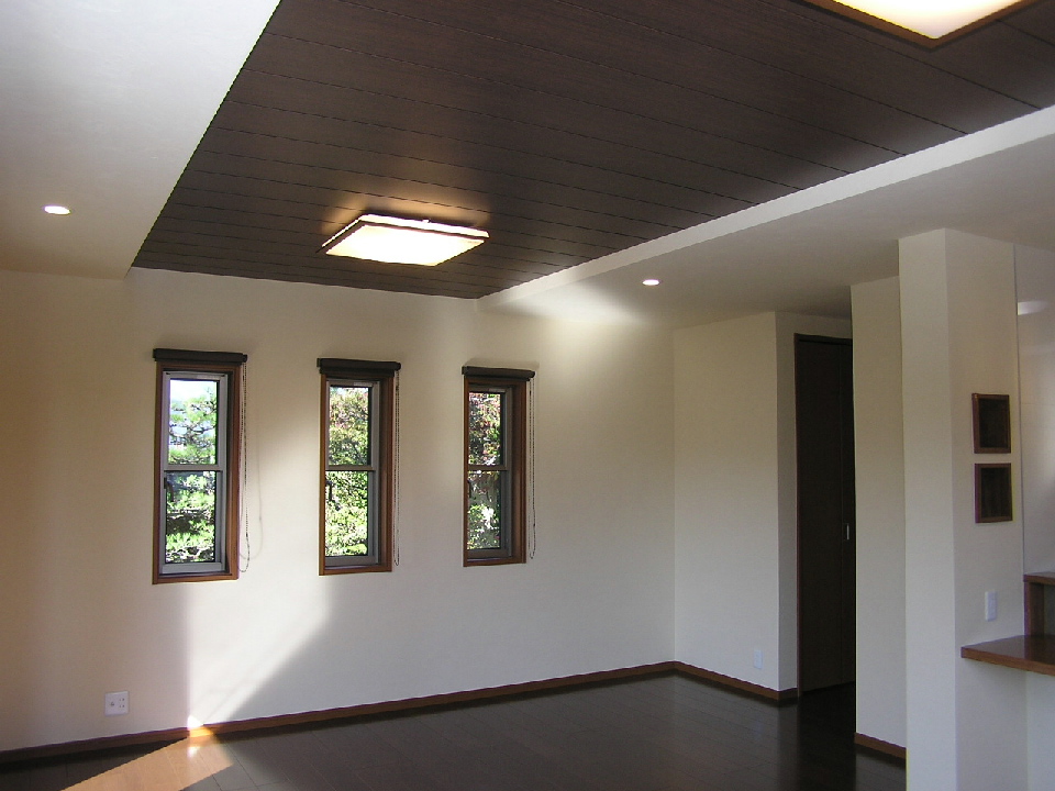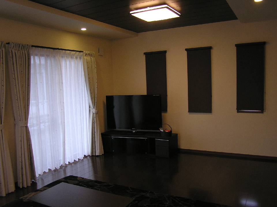 ダーク色を貴重とした快適LDK そして、廻りを和らげたるためにベージュ色の珪藻土を塗りました。