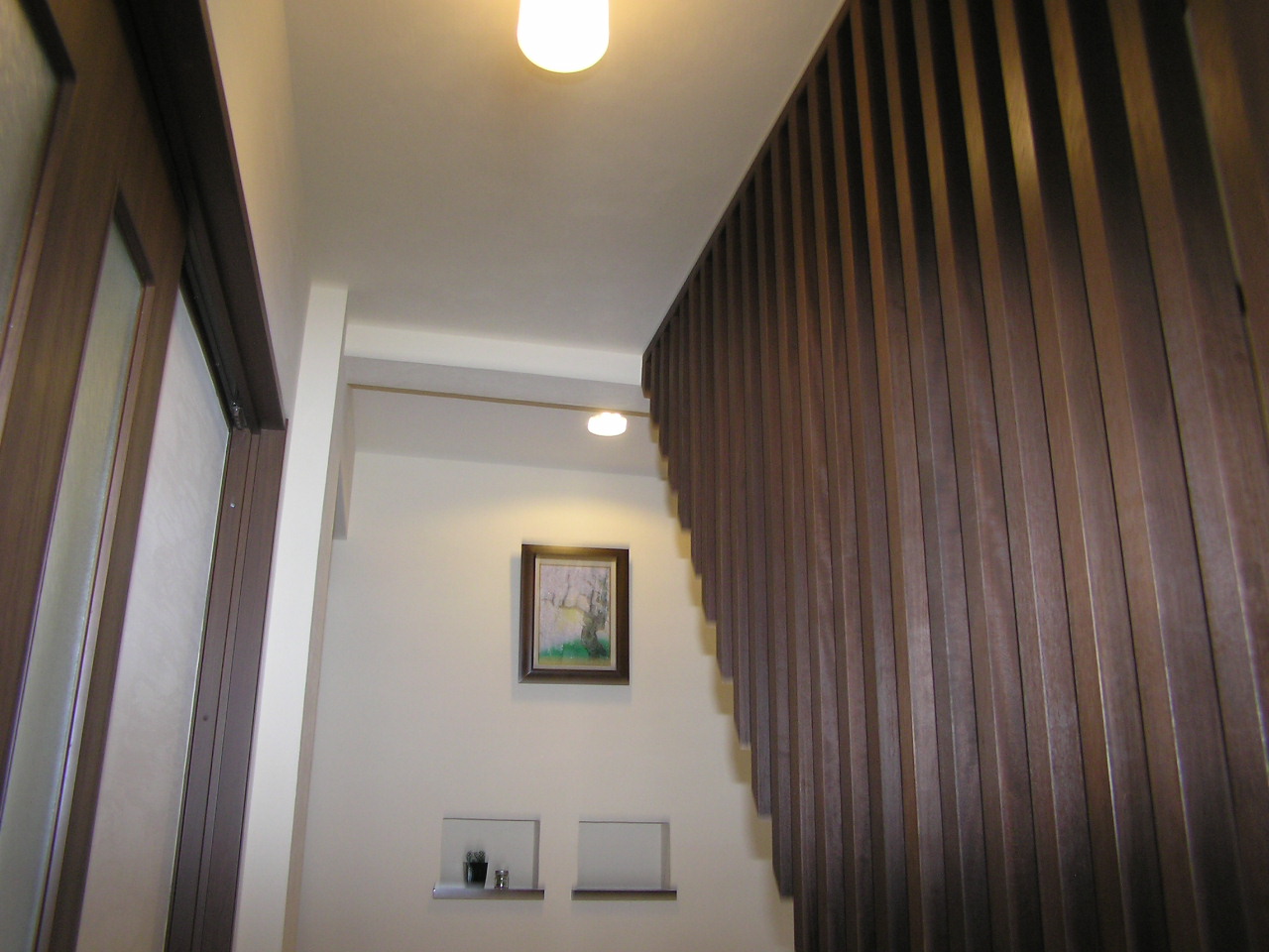 玄関奥には奥様の提案した飾り棚(珪藻土で巻き込みました)