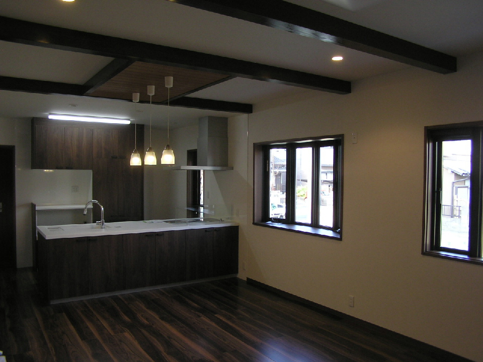 天井には梁材を とても良い色に仕上がりました