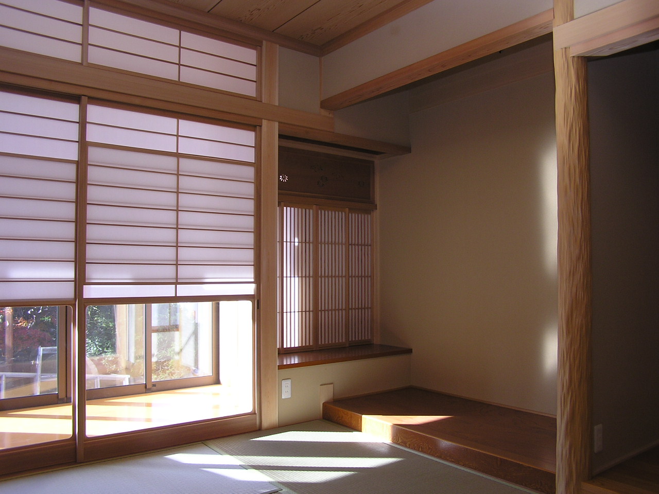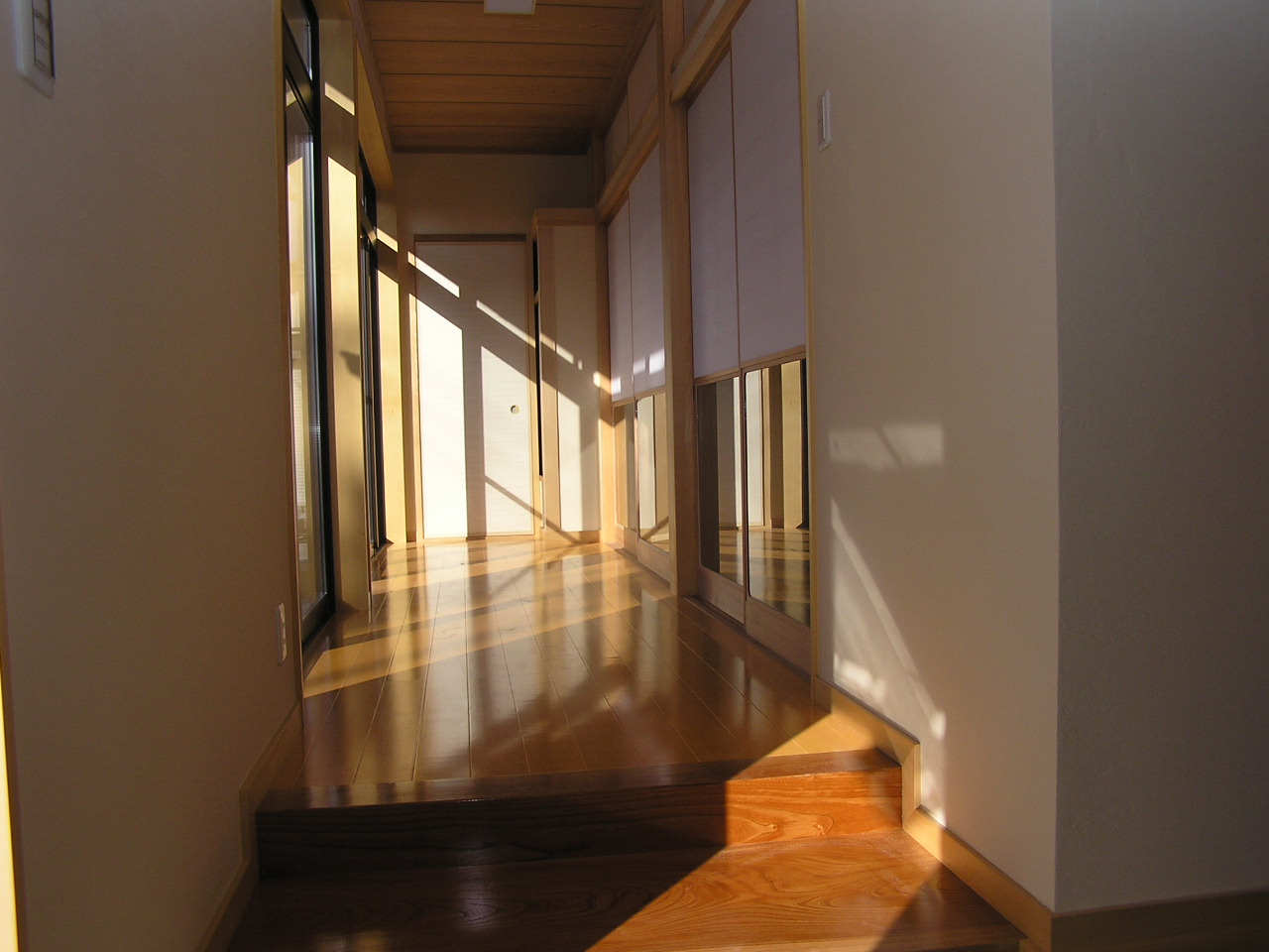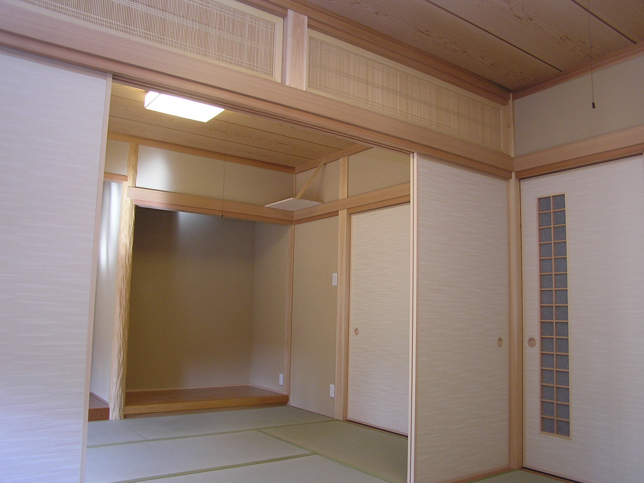 玄関から客間への入口 明かり部に和紙材を取り入れてます