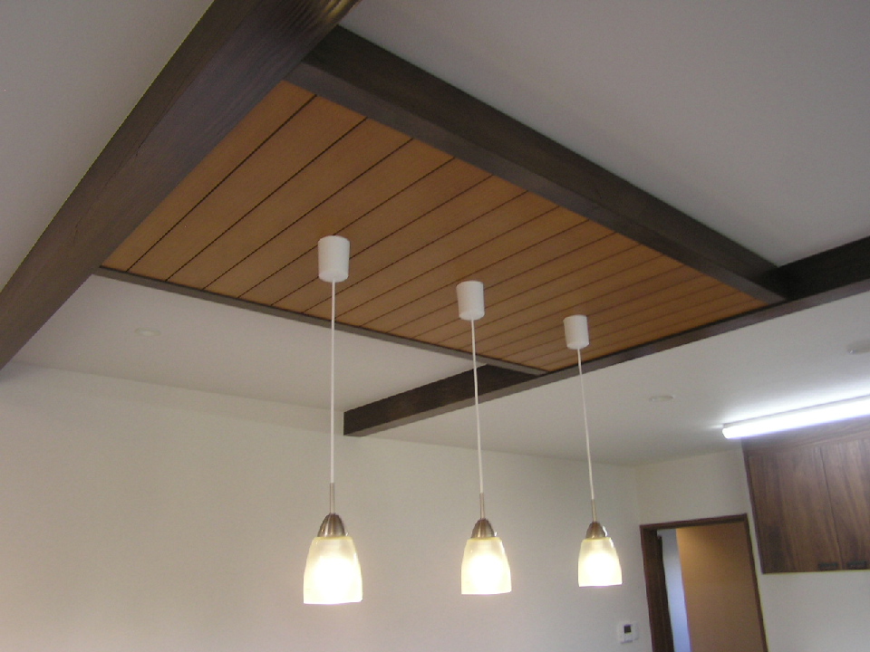 天井には梁材を とても良い色に仕上がりました