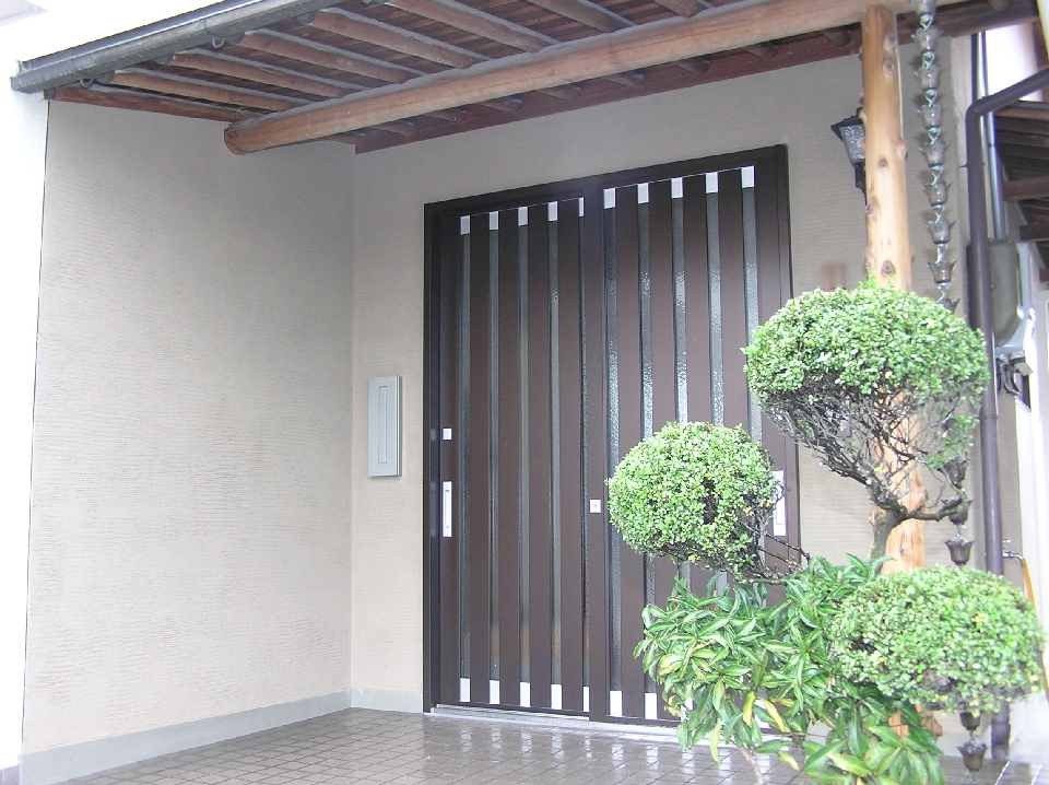 さらに玄関入口を新設し、廻りの壁をジョリパット(湿式)仕上げにしました。より落ち着いた風格ある門構えになりました。