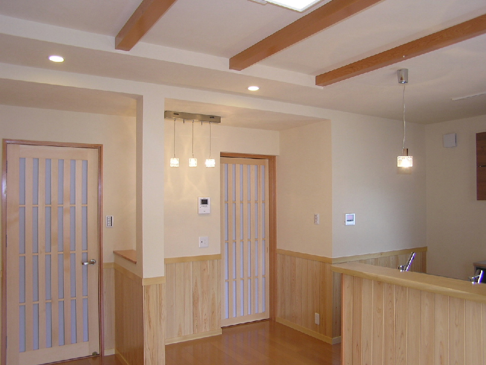 DK 天井には無垢梁、それを包み込む珪藻土