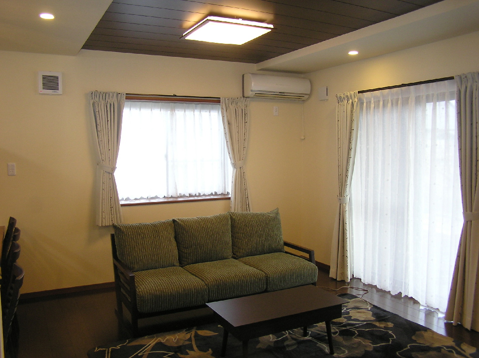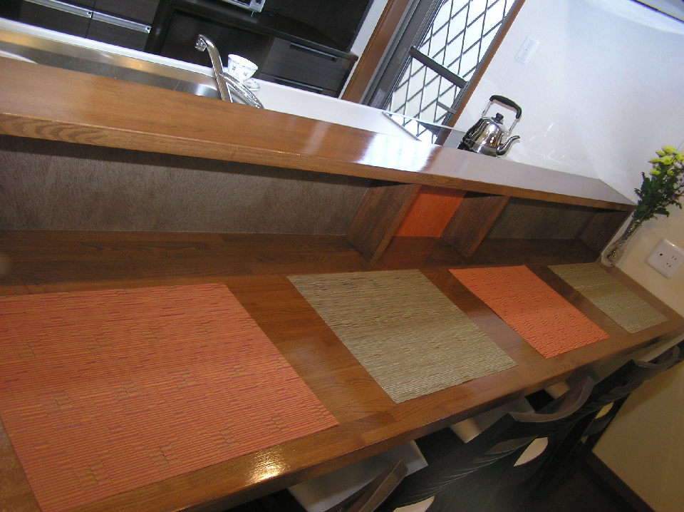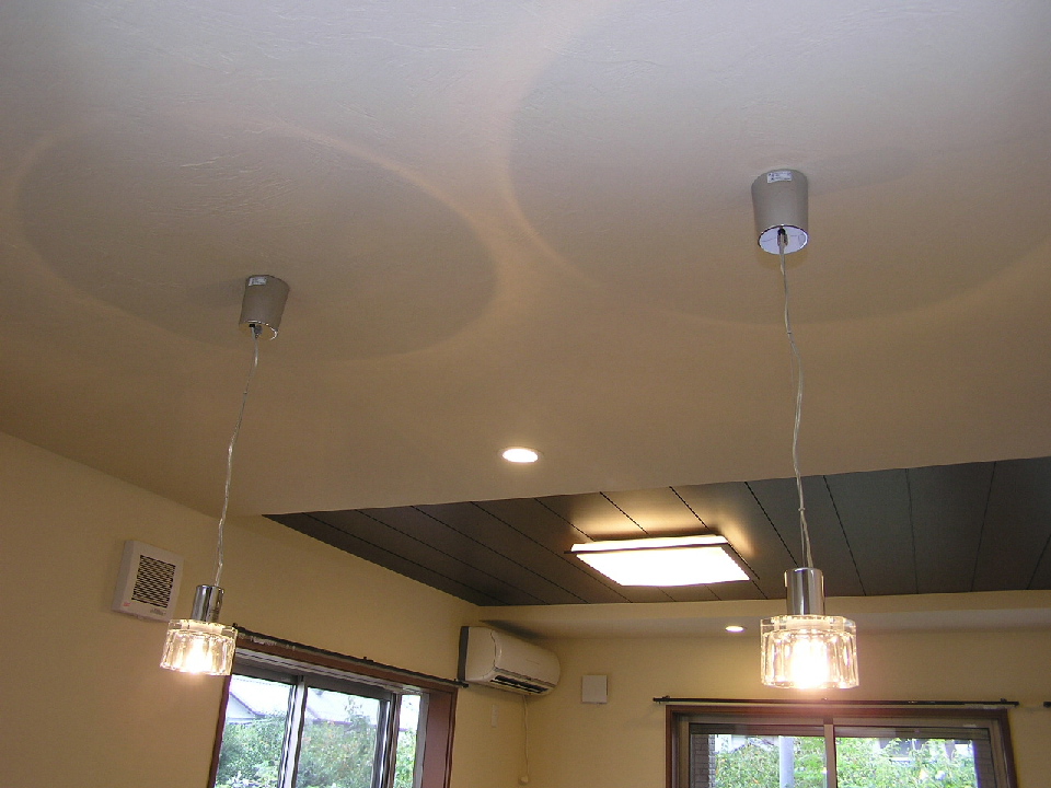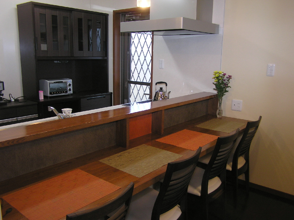 ダーク色を貴重とした快適LDK そして、廻りを和らげたるためにベージュ色の珪藻土を塗りました。