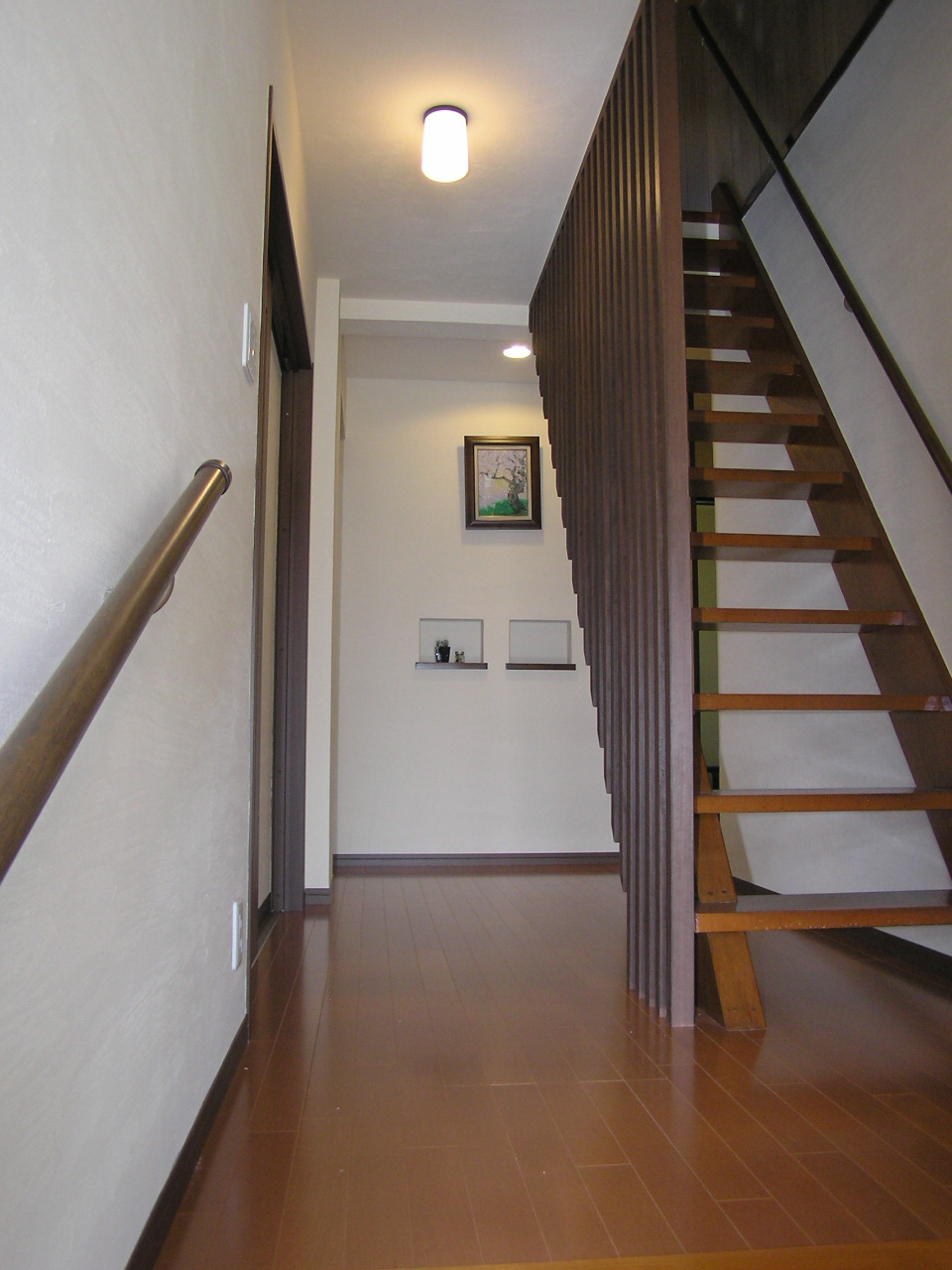 玄関奥には奥様の提案した飾り棚(珪藻土で巻き込みました)