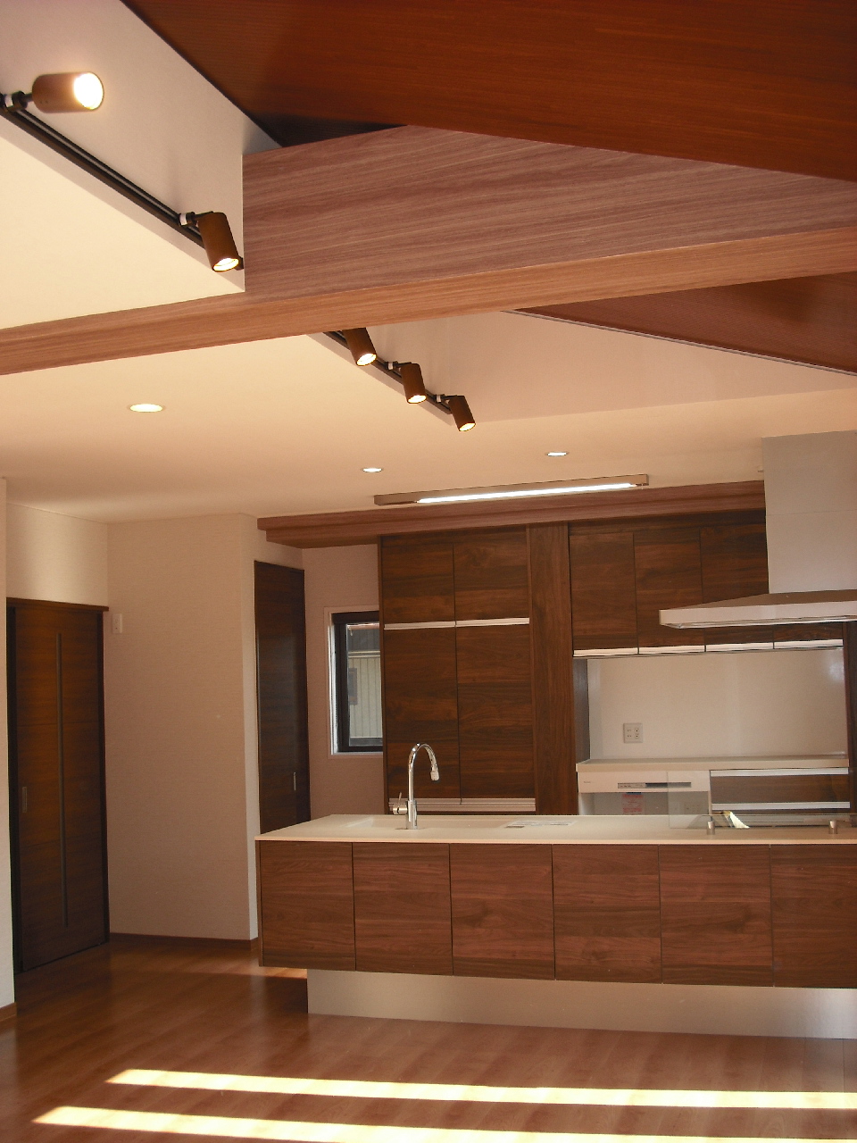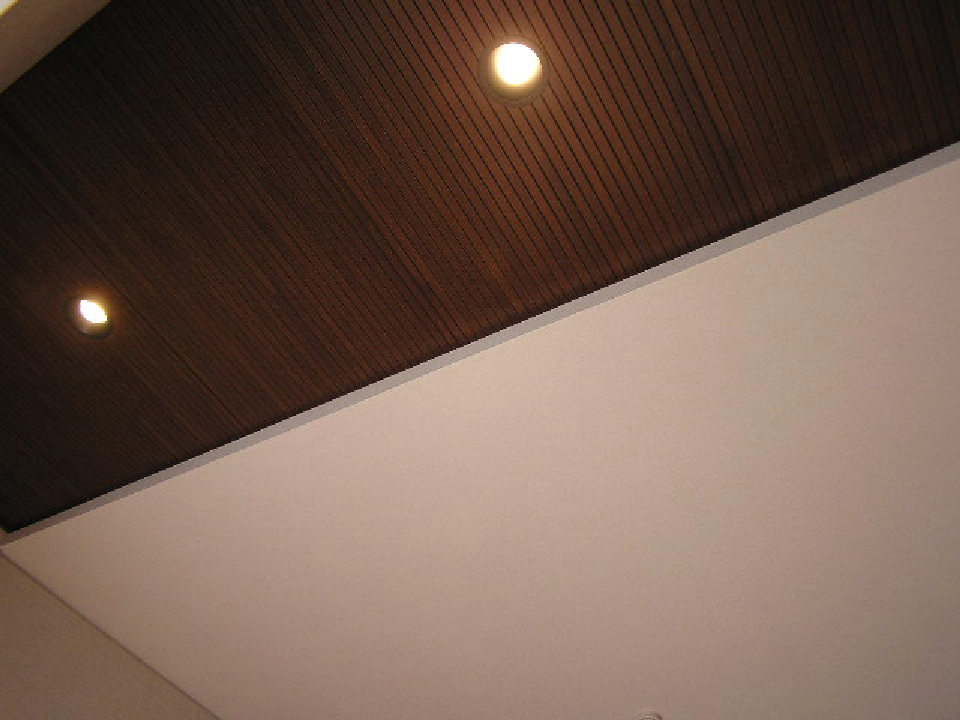 天井に木板、温かみのある空間に