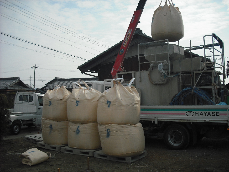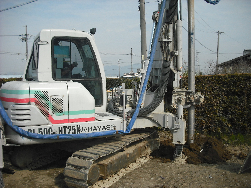 地盤調査結果により、支持層が深いため柱状改良工法を選択