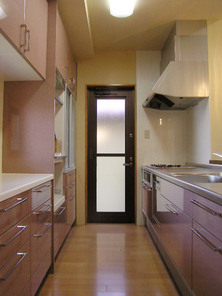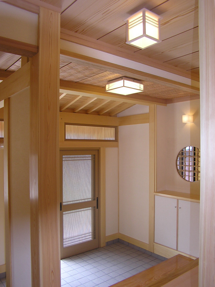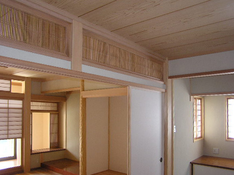 高さ2.2mある特注無垢建具、戸を開けるとリビングと一体化