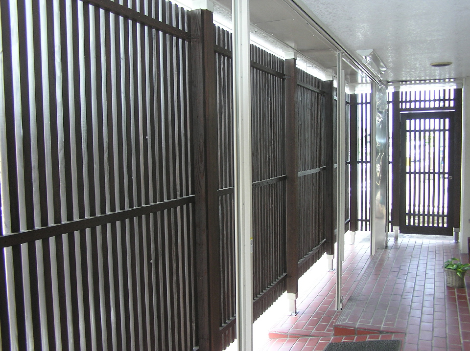 木格子を設置することにより、画廊=和の風格に