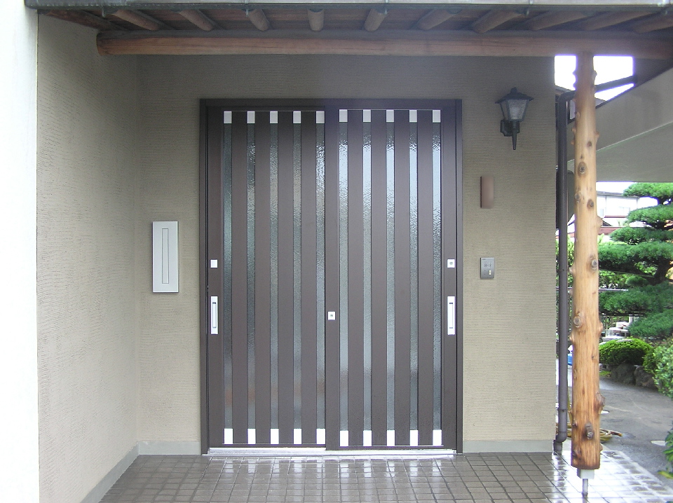 さらに玄関入口を新設し、廻りの壁をジョリパット(湿式)仕上げにしました。より落ち着いた風格ある門構えになりました。